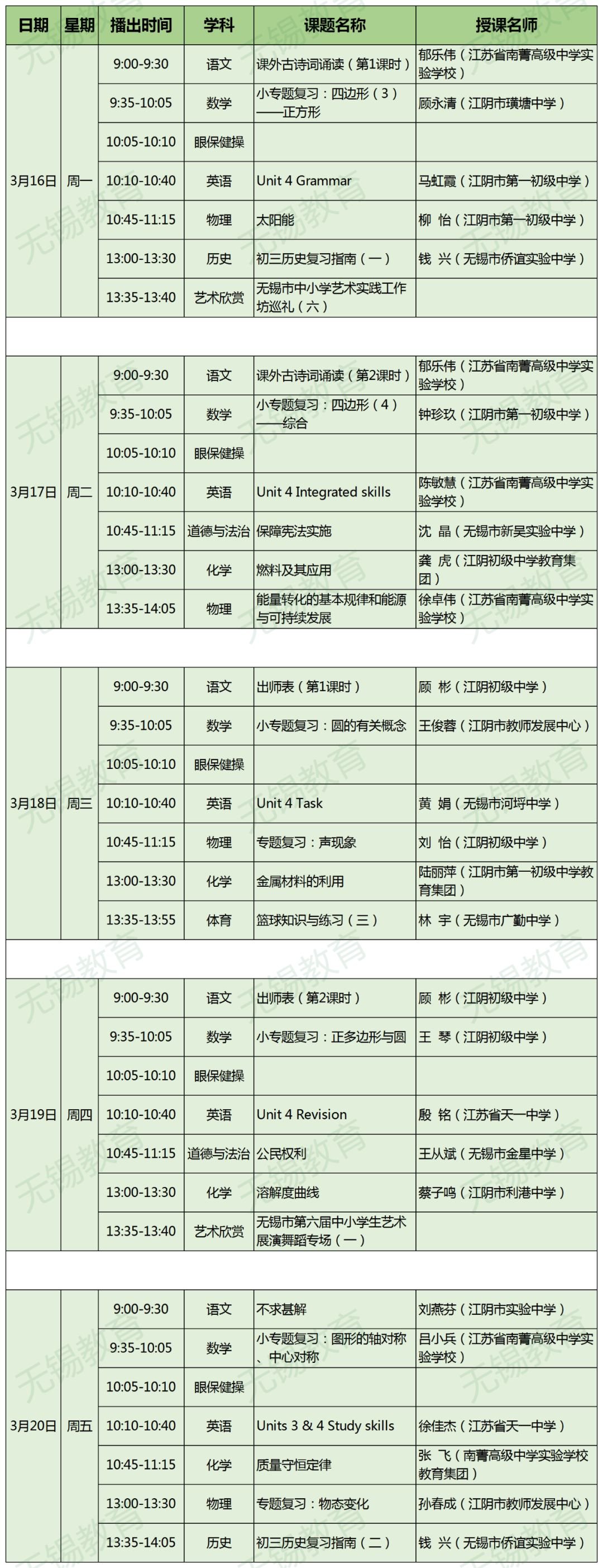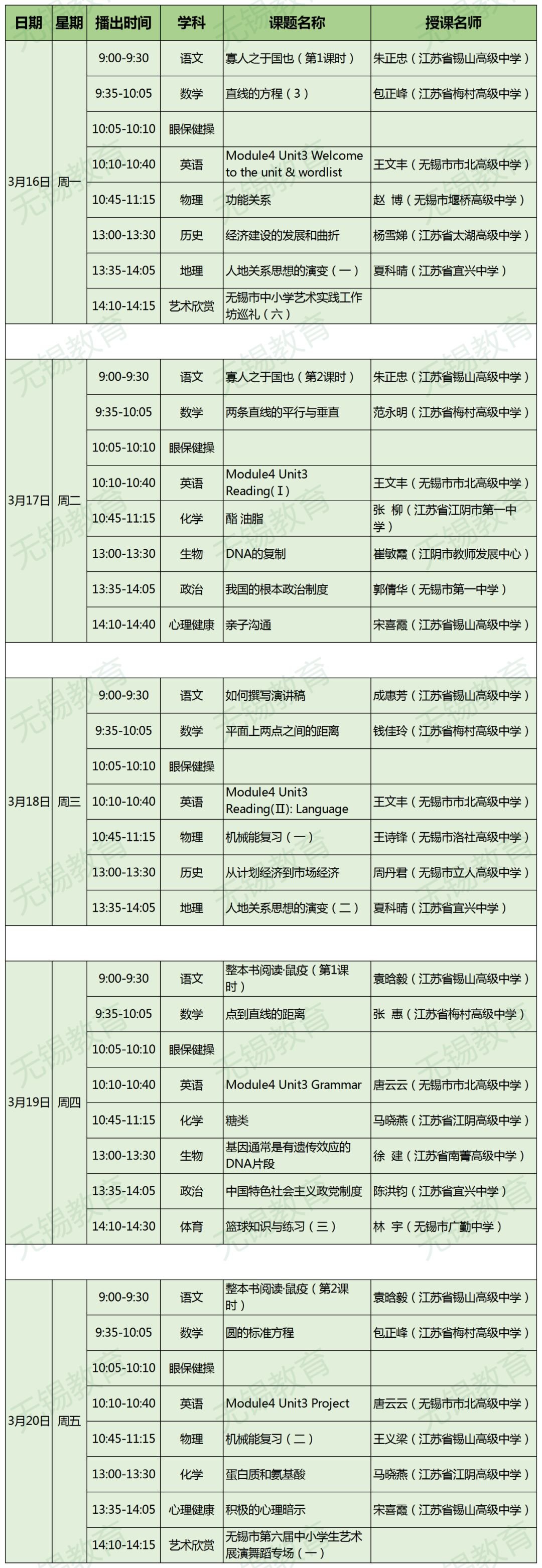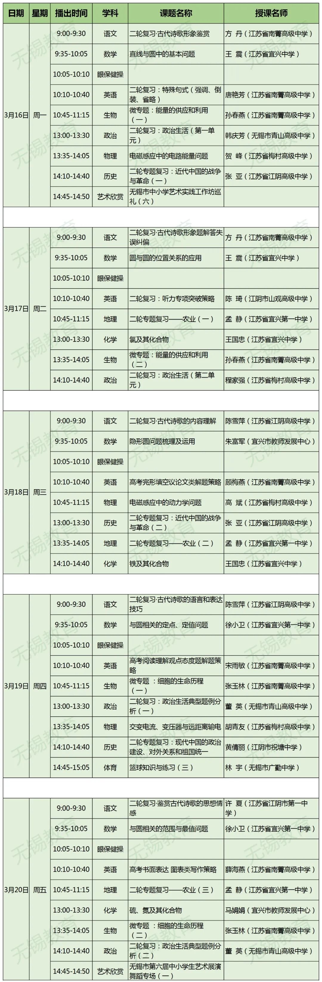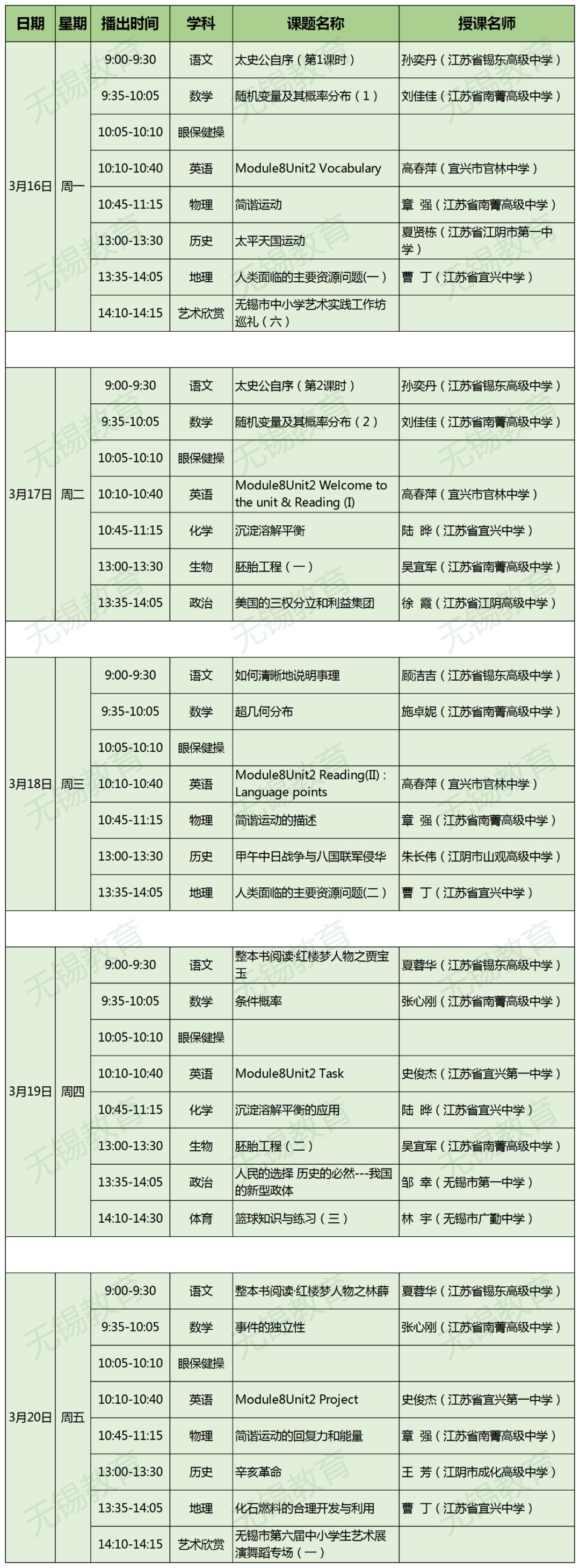 小学一年级至高三年级都是9:00开始,首播结束后可以通过点播方式再次学习
