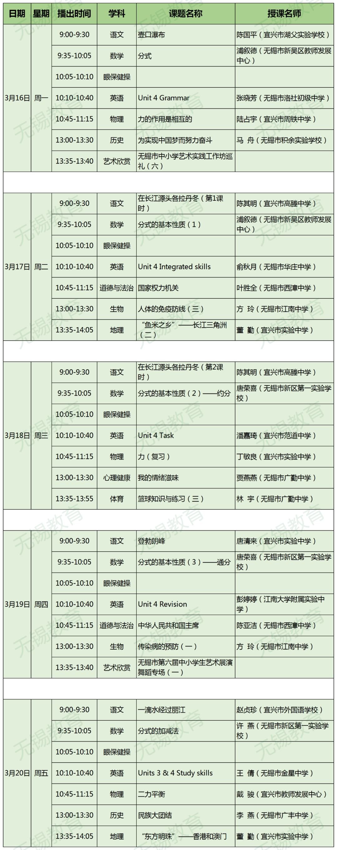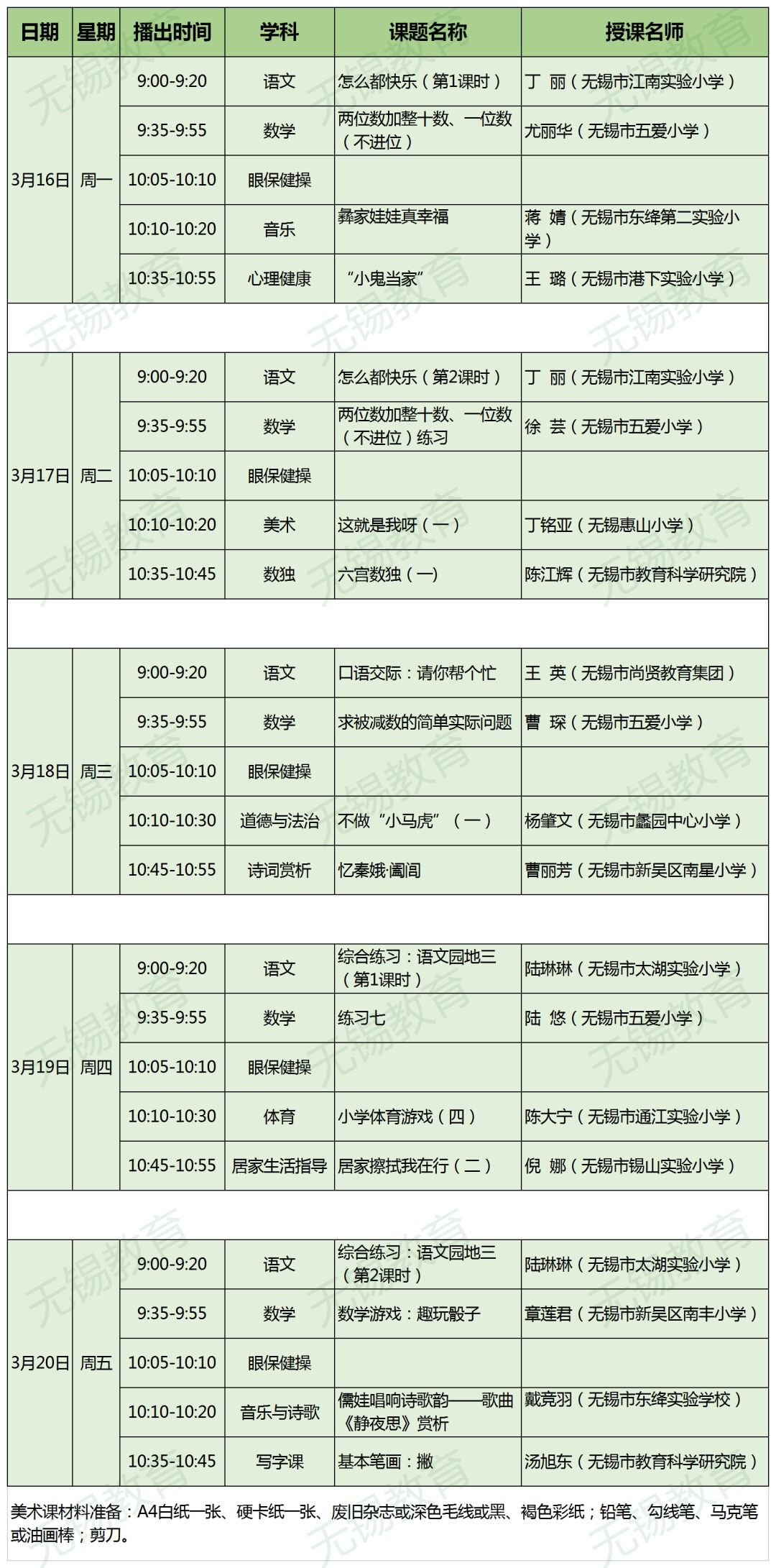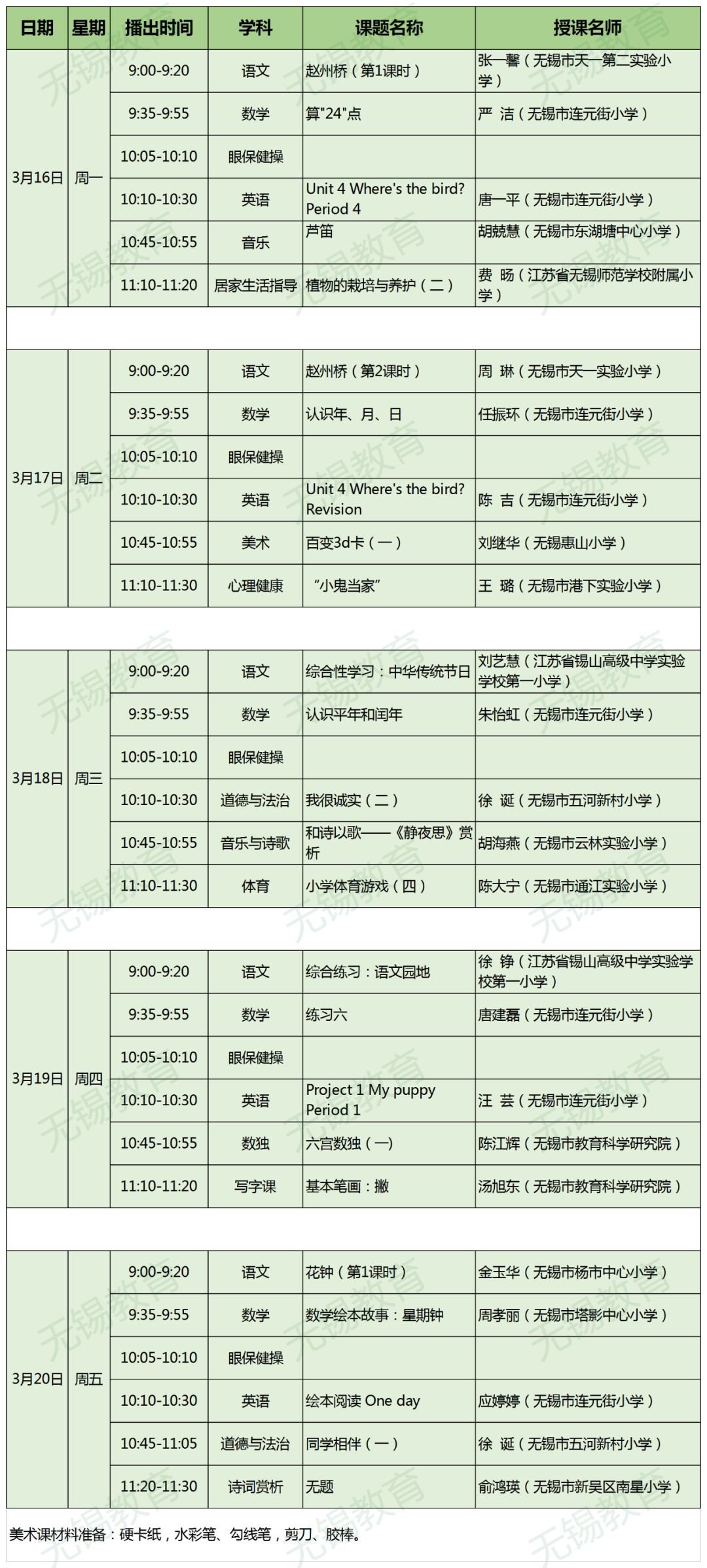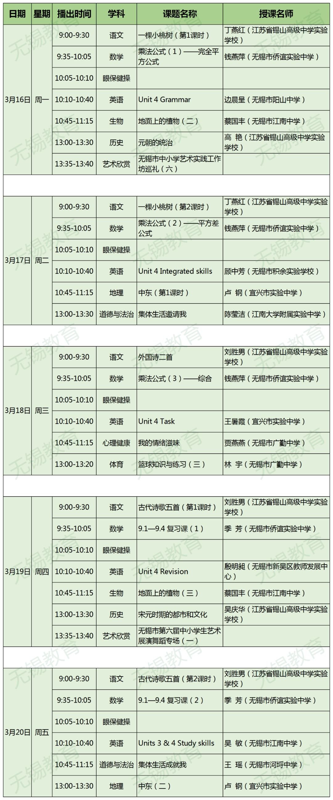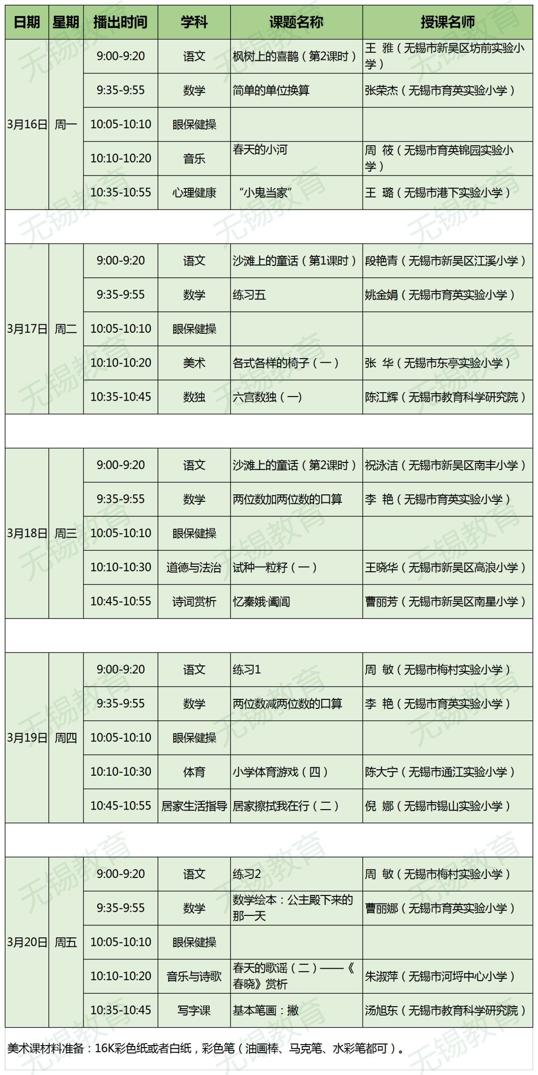 小学一年级至高三年级都是9:00开始,首播结束后可以通过点播方式再次学习