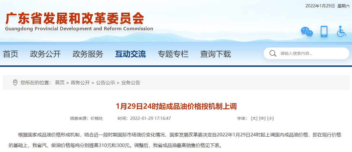 2022年1月29日广东油价上调(广东2021年油价调整记录)