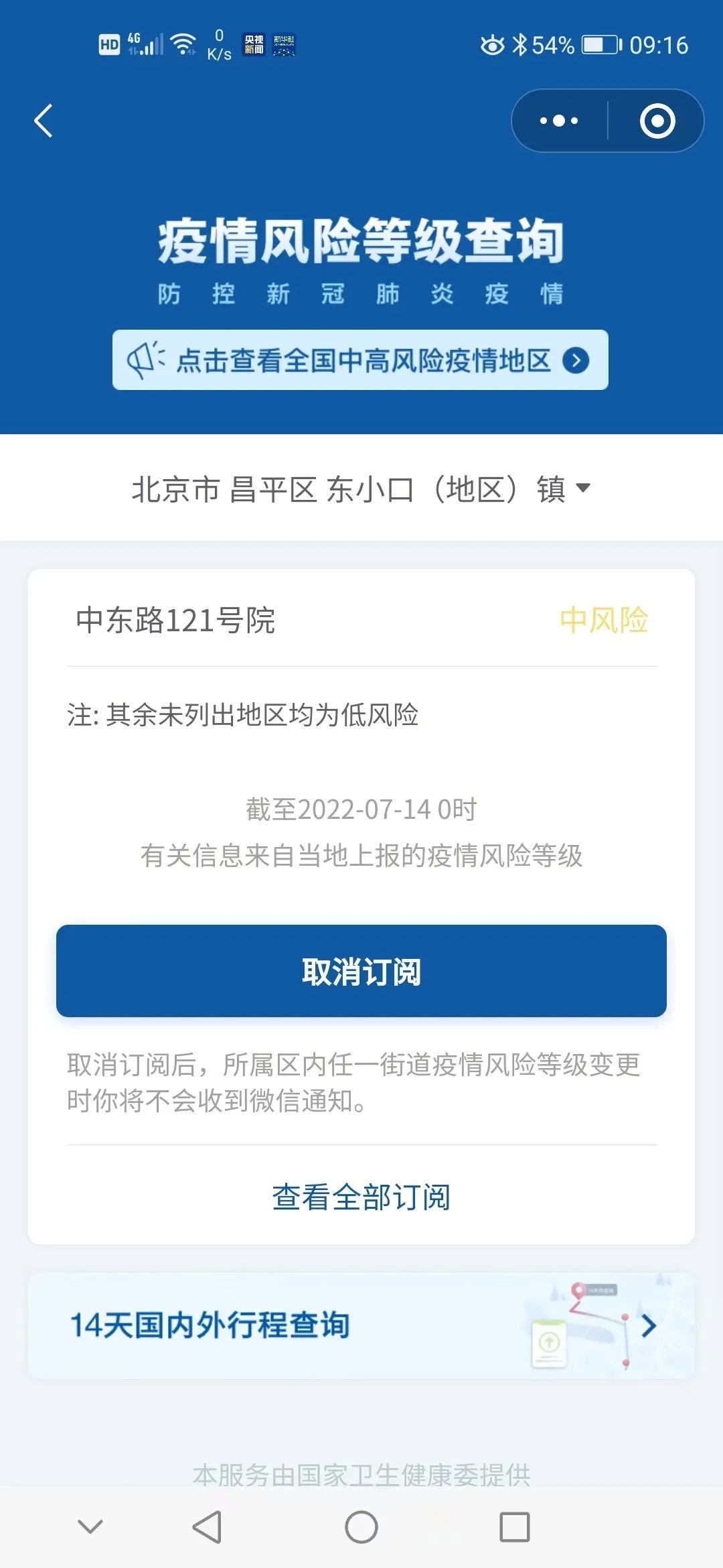 7月14日起北京昌平区东小口镇中东路121号院降为中风险区
