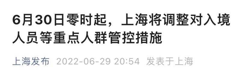 上海市新冠肺炎疫情防控工作领导小组办公室发布消息:为进一步做好上海市新冠肺炎疫情防控工作,根据国务院联防联控机制《新型冠状病毒肺炎防控方案(第九版)》有关要求,现对入境人员等重点人群管控措施调整如下: