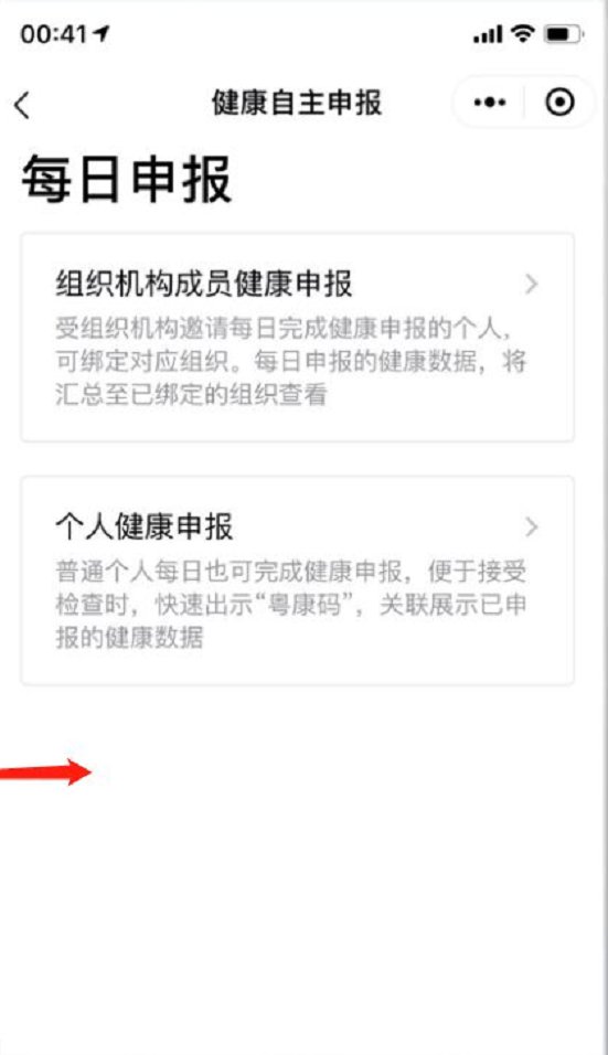 在“粤康码”页面点击“健康情况申报”,进入健康自主申报页面,点击“个人健康申报”,跳转至健康申报的页面,填写个人健康信息完成申报.