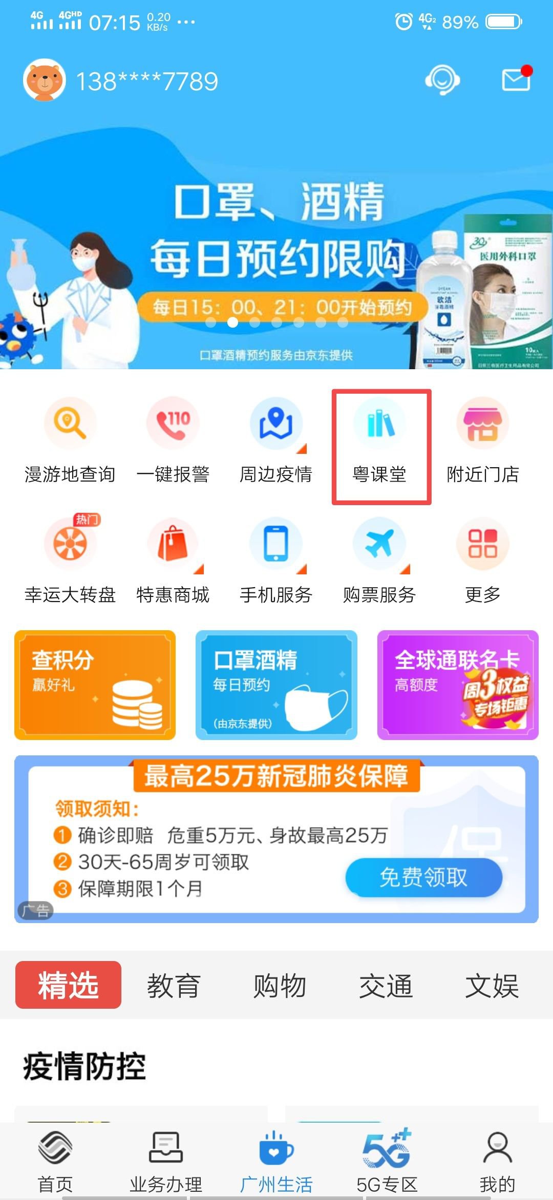 操作方式:广东移动手机营业厅--生活--粤课堂
