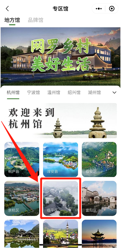 微信小程序搜索“网上农博”进入“网上农博”小程序首页,点击“市县馆”→“临平区”即可进入“临平专属优惠券”领取页面。