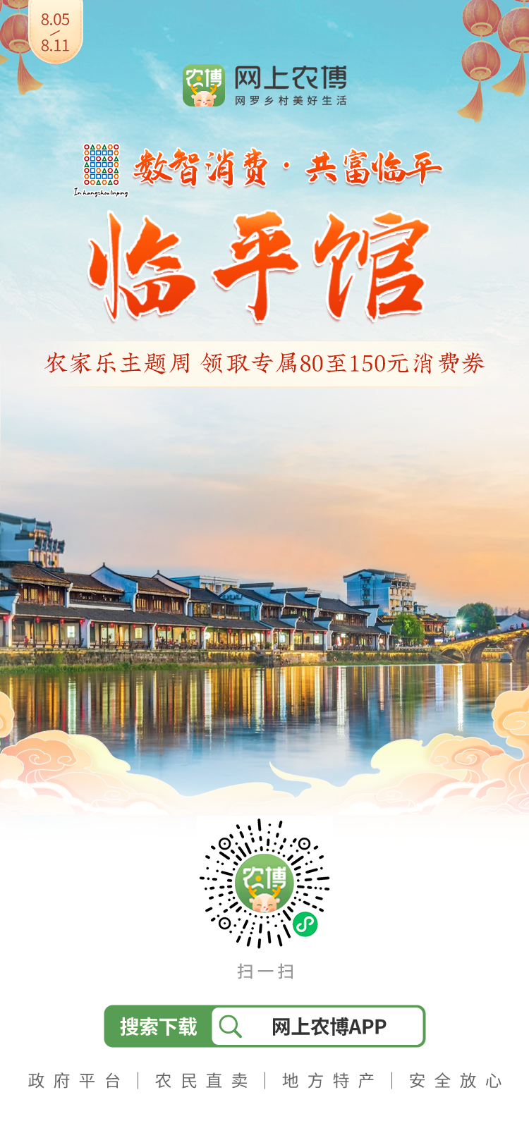 点这,长按扫码进入到“网上农博临平馆”官方小程序,支持线上直接使用,足不出户购买临平区优质农产品,即可享受满减优惠!