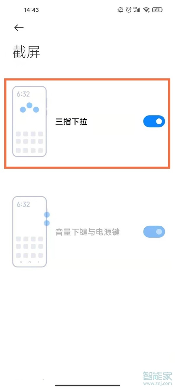 3、三指下拉:点击设置-更多设置-按键快捷方式-截屏,开启【三指下拉】。
