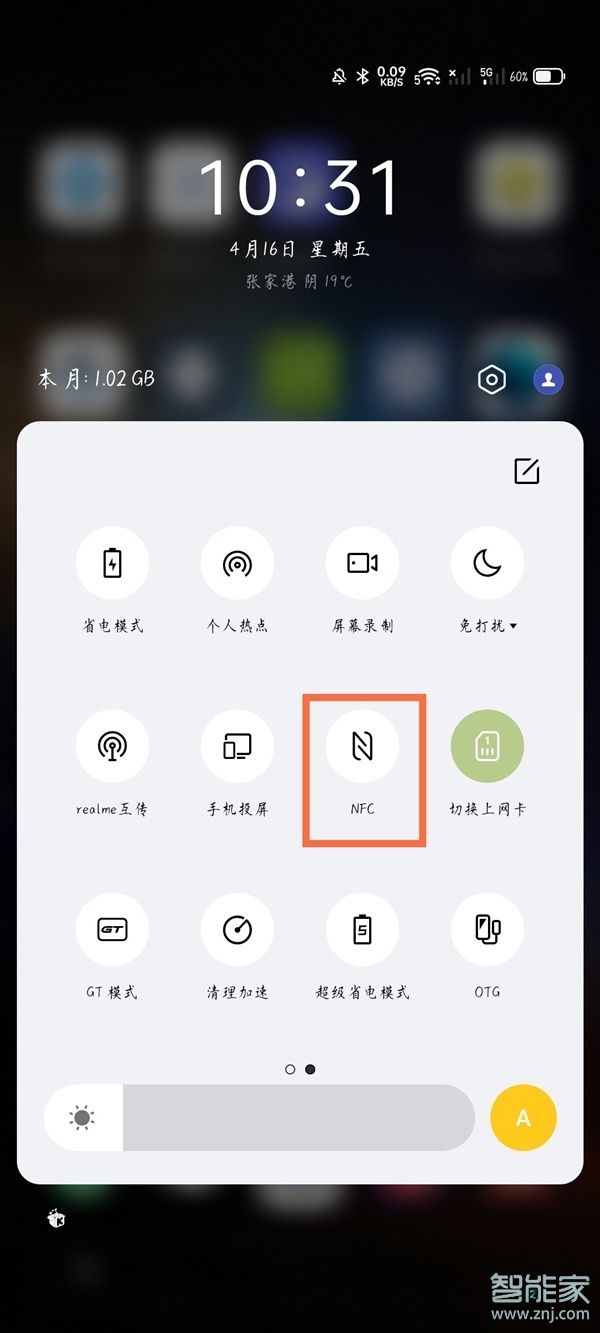 1、从屏幕顶端下拉,拉出状态栏,点击【NFC】即可。