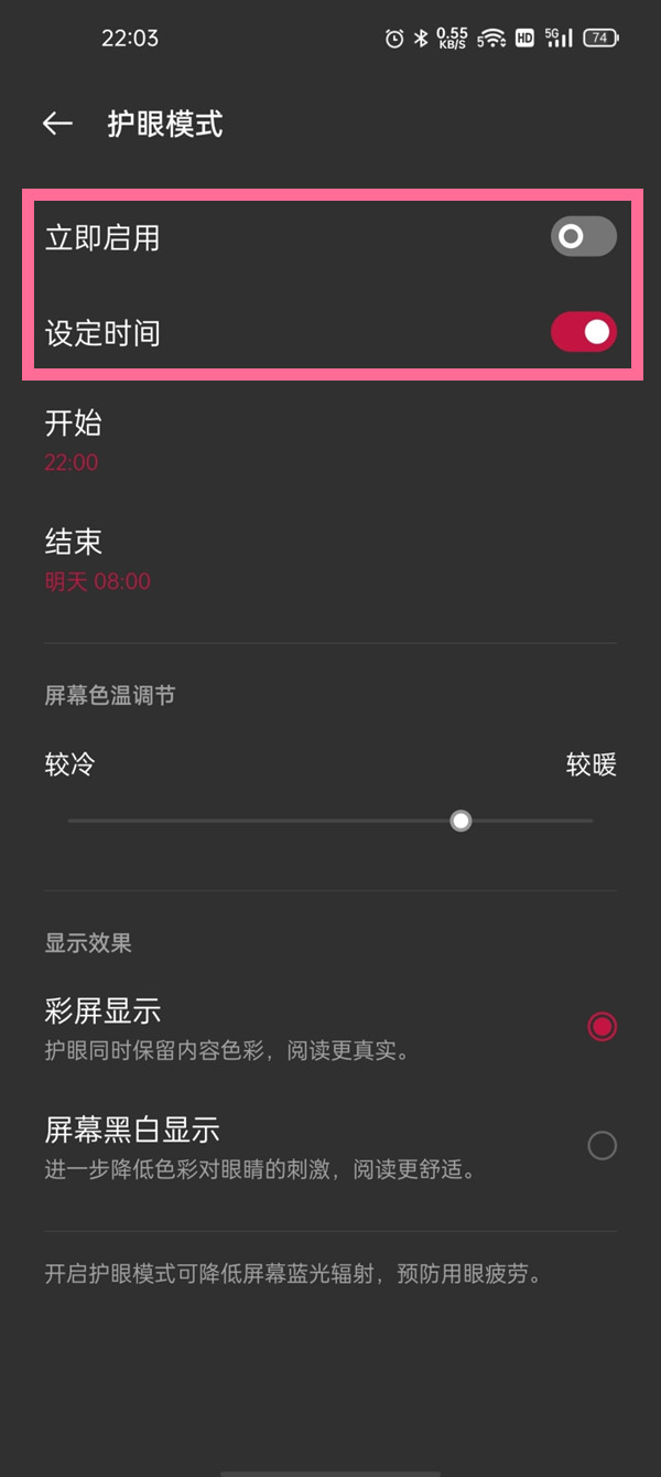 3、点击护眼模式还可选择【立即开启】或【定时开启】。