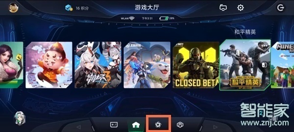 1、在桌面找到并打开游戏空间app,进入游戏空间点击下面的旋风图标。
