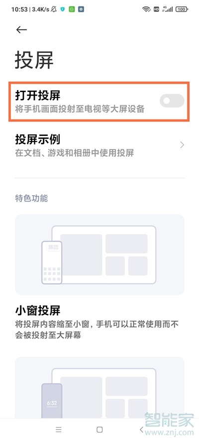 3、将【打开投屏】后面的开关开启,点击要投屏的电视名称,等待成功连接即可。
