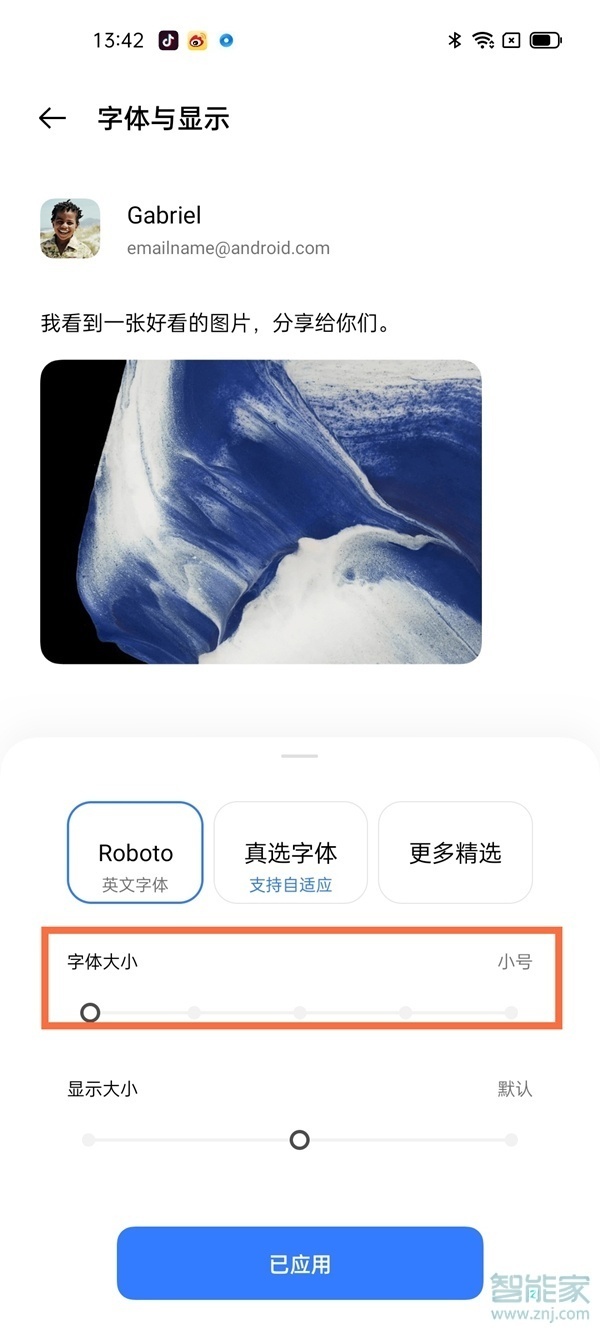 3、在字体大小那一栏往左滑动调小,往右滑动调大。