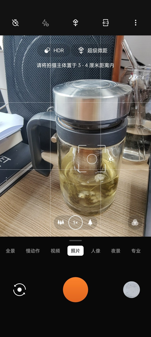 4、在拍摄时根据拍摄对象和距离会自动进入微距模式。