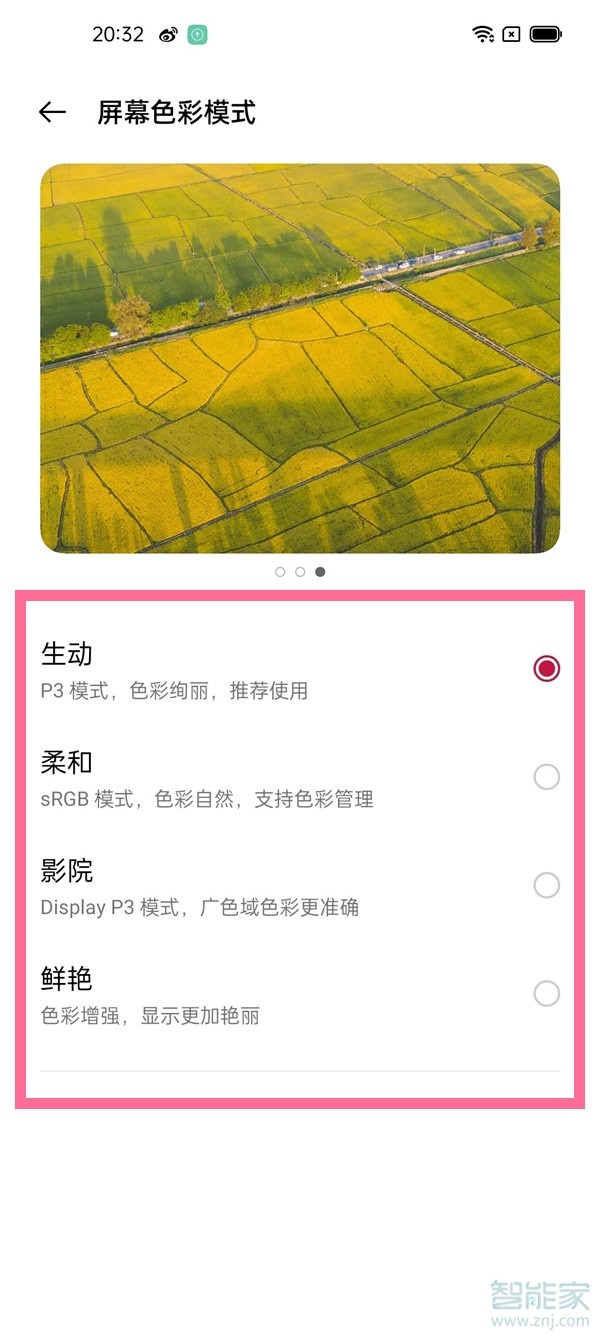 3、手机有四种色彩模式,勾选一种自己想要设置的色彩模式即可。