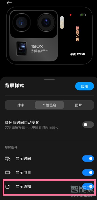 5、在息屏组件一栏将【显示通知】开关开启即可。