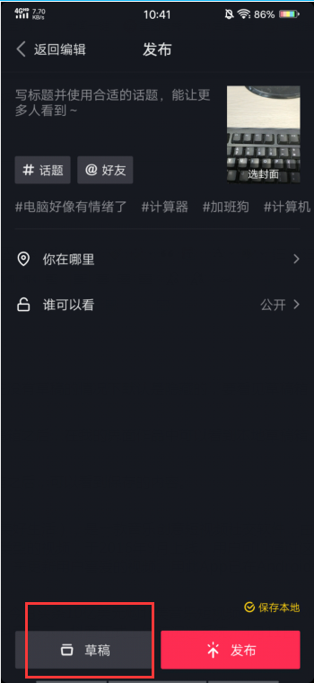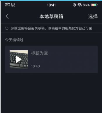 2、保存内容到草稿箱之后,在我的界面作品中可以看到本地草稿箱。