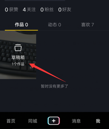 1、抖音的草稿箱在没有草稿的情况下默认是隐藏的,要看见草稿箱,可以先将一个视频保存在草稿箱中。