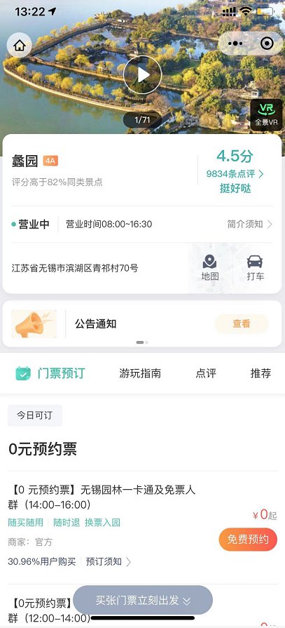 微信搜索“无锡蠡园”微信公众号,在菜单栏选择“预约购票”即可进入购票页面。