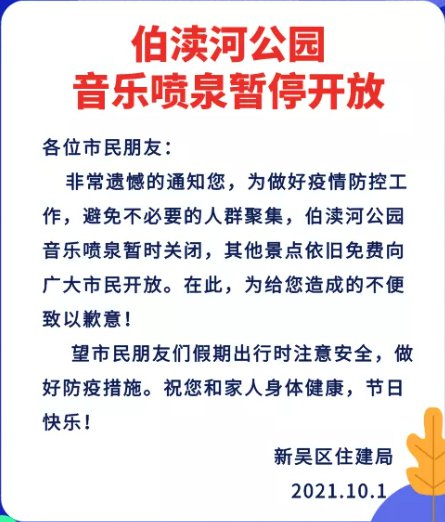 注意:根据“新吴慧生活”公告,伯渎河公园音乐喷泉暂停开放。