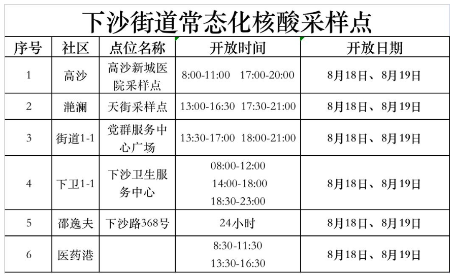 8月18日杭州钱塘区下沙街道常态化核酸采样点位
