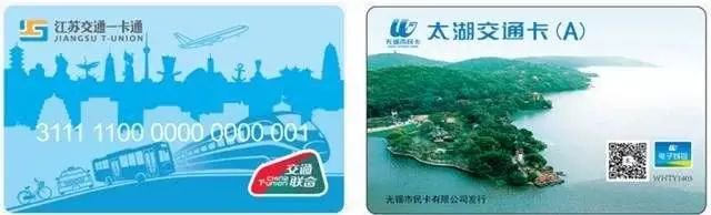 无锡市民卡(高龄卡除外)、太湖交通卡、江苏交通“一卡通”。