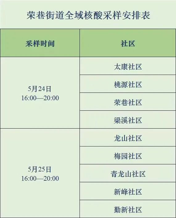 关于5月24日至5月25日在荣巷街道开展全域核酸检测的公告