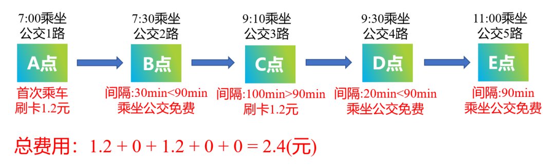 如果换乘时间间隔少于90分钟,则,免费换乘。