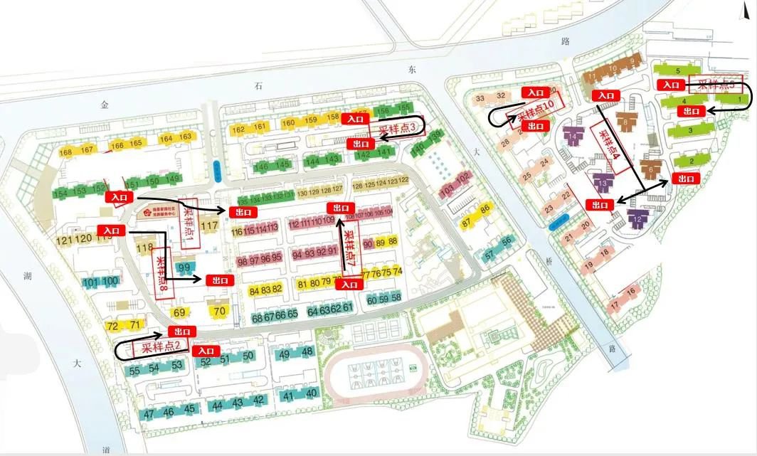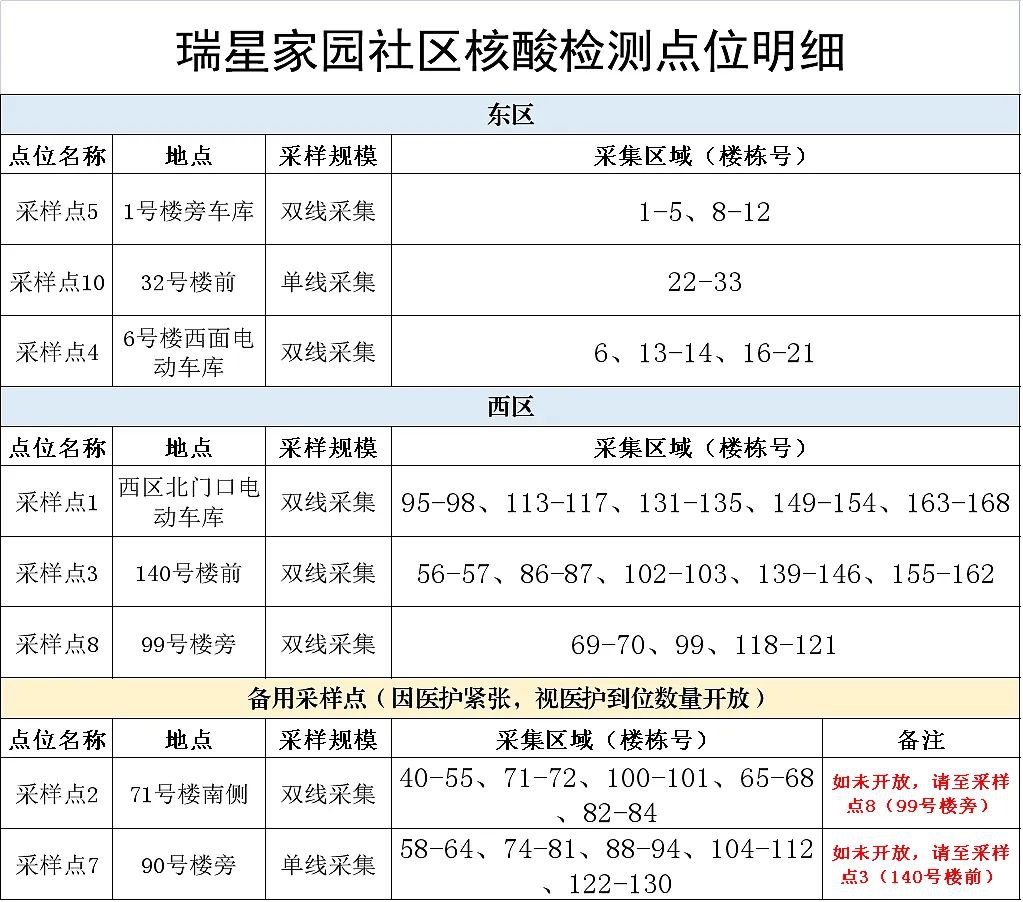 注意:请各位居民根据楼栋号对应采样点进行采集,避免长时间排队。18:00-19:00为工作人员晚餐休整时间,请各位居民在17:30以后预估排队时间,避免等待。