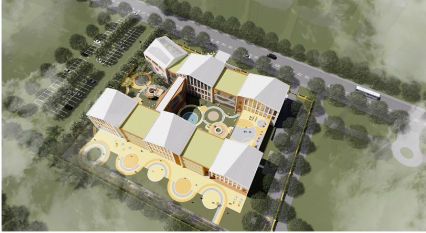 该项目位于惠山高新区(洛社镇)翠竹南路与张三坝河交叉口西侧,总投资约5500万元,规划占地面积 9416平方米,设置15个班级,可接收450名幼儿学生。项目拟建一栋地上三层、地下一层教学楼,含户外活动场地和地下停车场等。