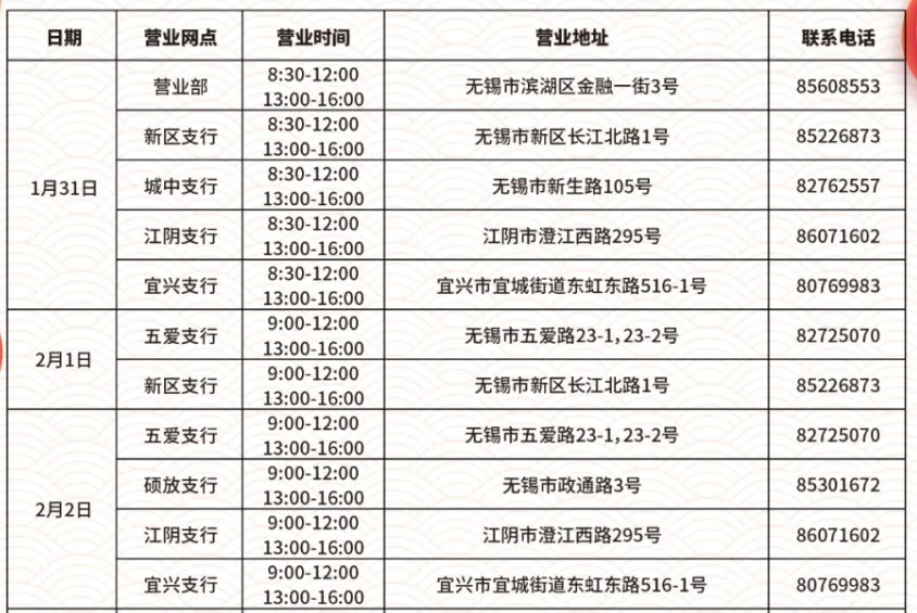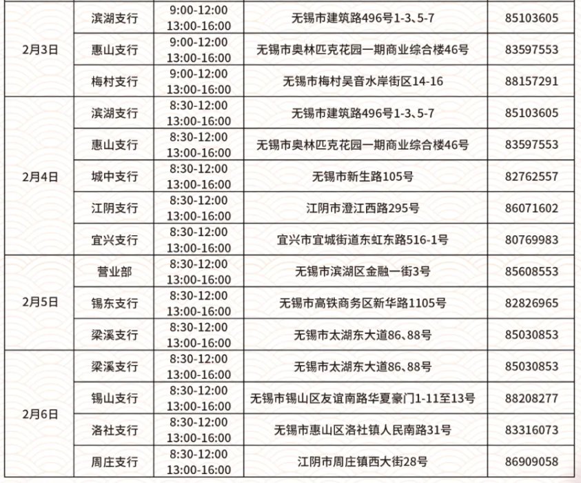 华夏银行无锡分行2022春节营业网点公告》》》点此查看(拨打固定电话,需加区号0510)