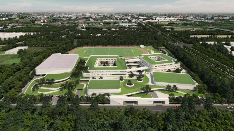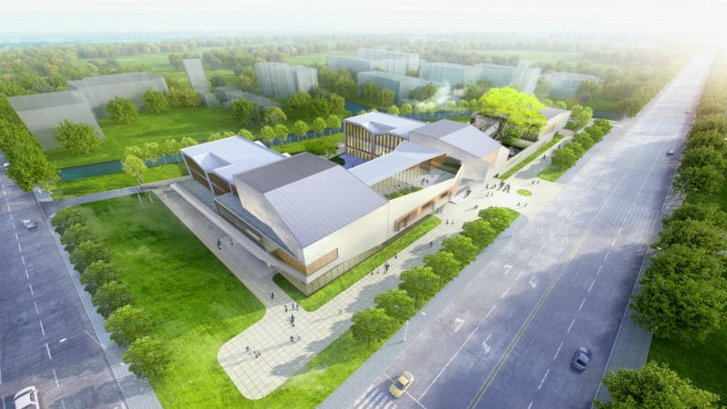 项目位于经开区吴都路与蠡河路交叉口西北侧,总用地面积约54500平方米,设计上以“绿色生态”为主题概念,采用现代与传统结合的建筑设计手法,将学生带入自然、融入自然