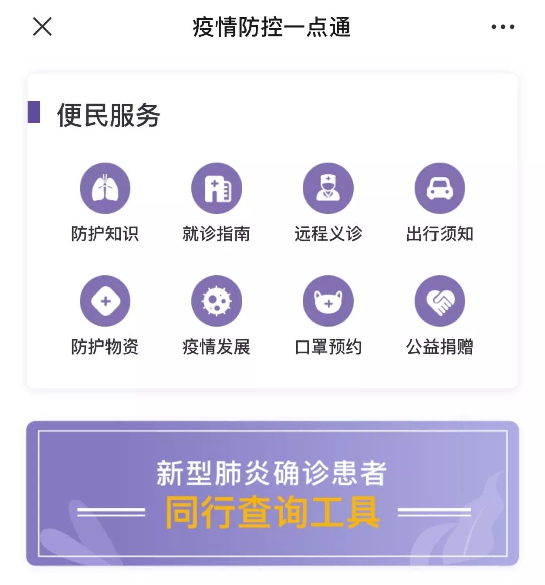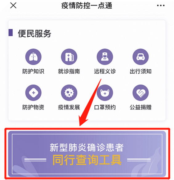 除此之外,春节后很多人往往会乘坐火车、航班等公共交通前往异地。现在,可以通过“便民服务版块”中的——新型肺炎确诊患者同行查询工具,让你随时确认同乘信息,把握最佳预防和自我观察时机,助你安全健康返程!